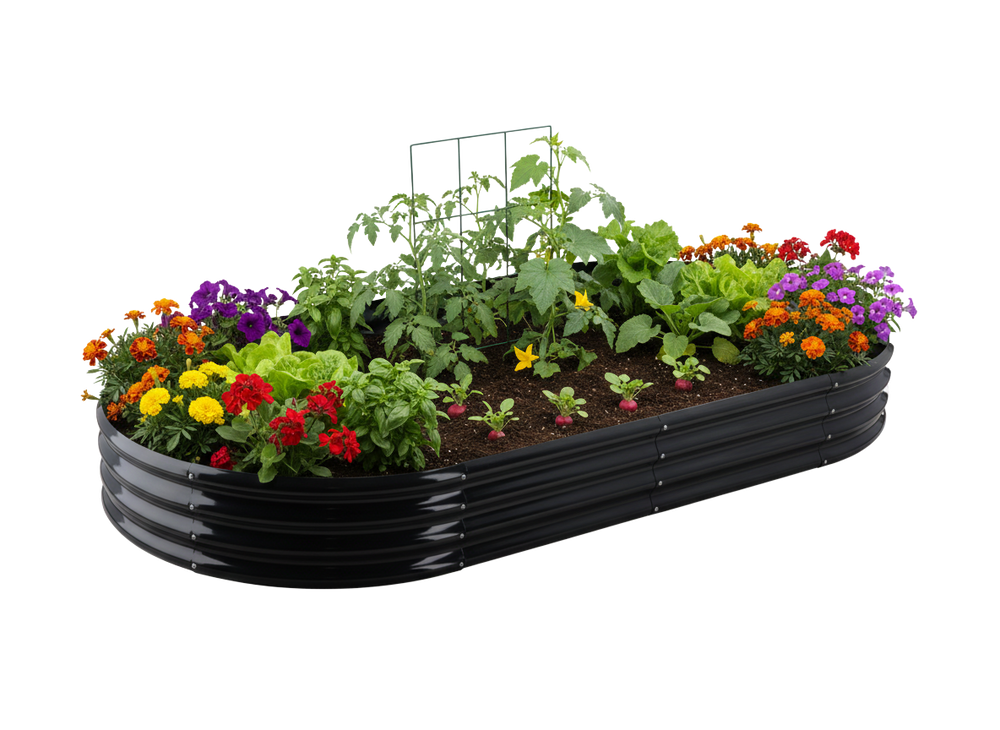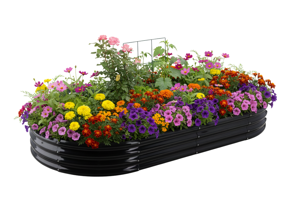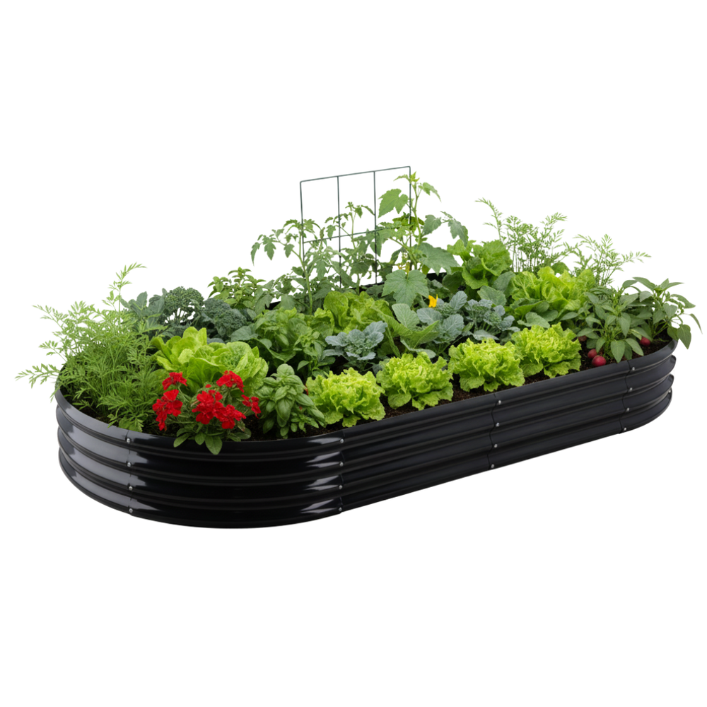 La forma ovale offre un accesso comodo da tutti i lati, facilitando la cura delle piante.