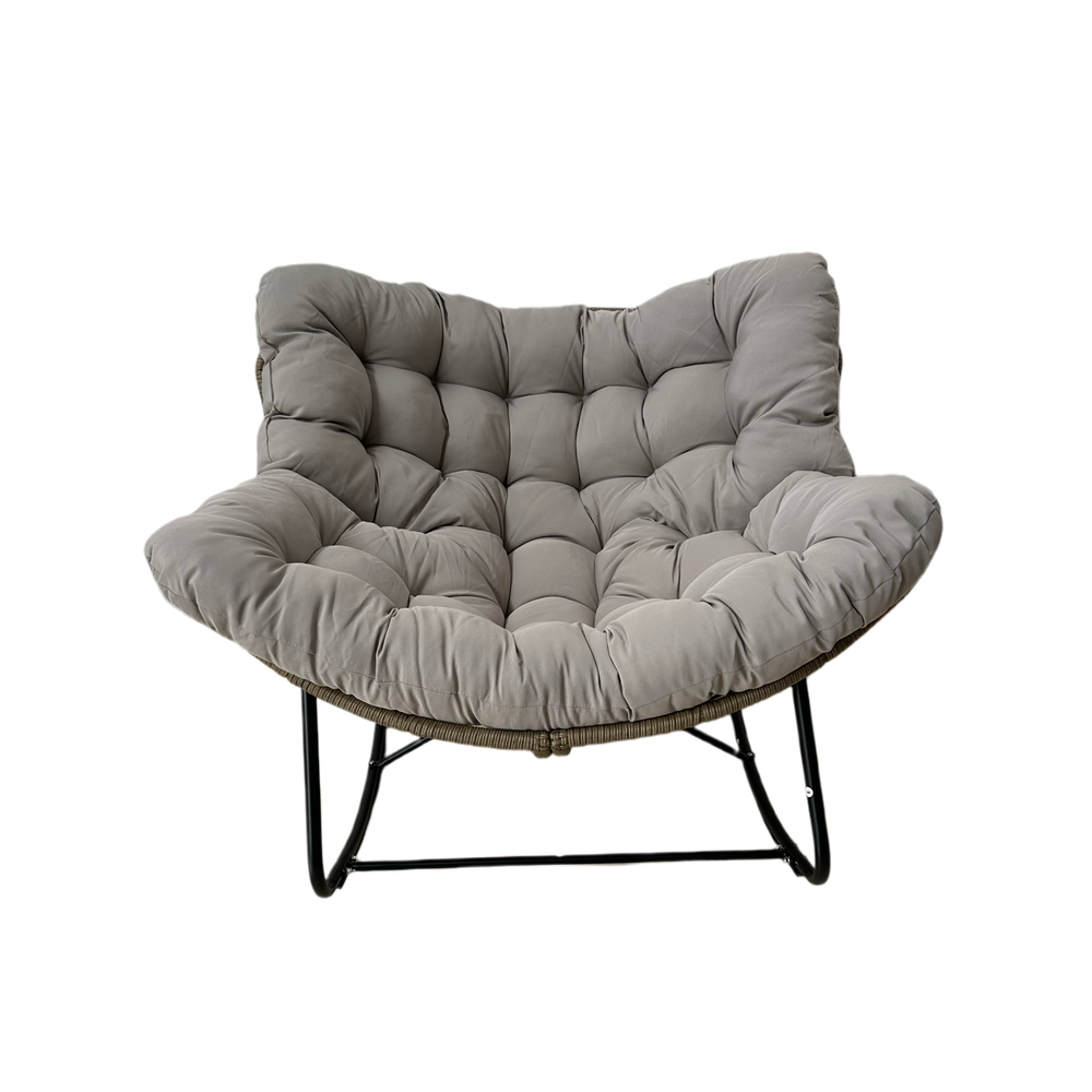 Poltrona a Dondolo Svinga in Rattan con Cuscini Grigi 112 x 104 x 69 cm