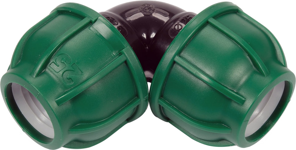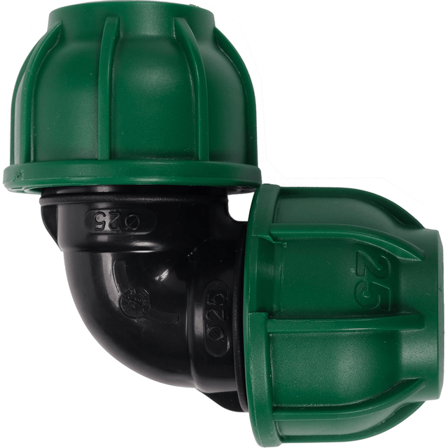 Il gomito a compressione FLO 90° – 25x25 mm è progettato per la connessione angolare di tubi in PE in impianti idrici e di irrigazione. La forma a gomito consente di cambiare direzione con efficienza, mantenendo alta tenuta idraulica anche sotto pressione. Realizzato in polipropilene (PP) di qualità, resistente ad agenti chimici, raggi UV e pressioni fino a 10 BAR.