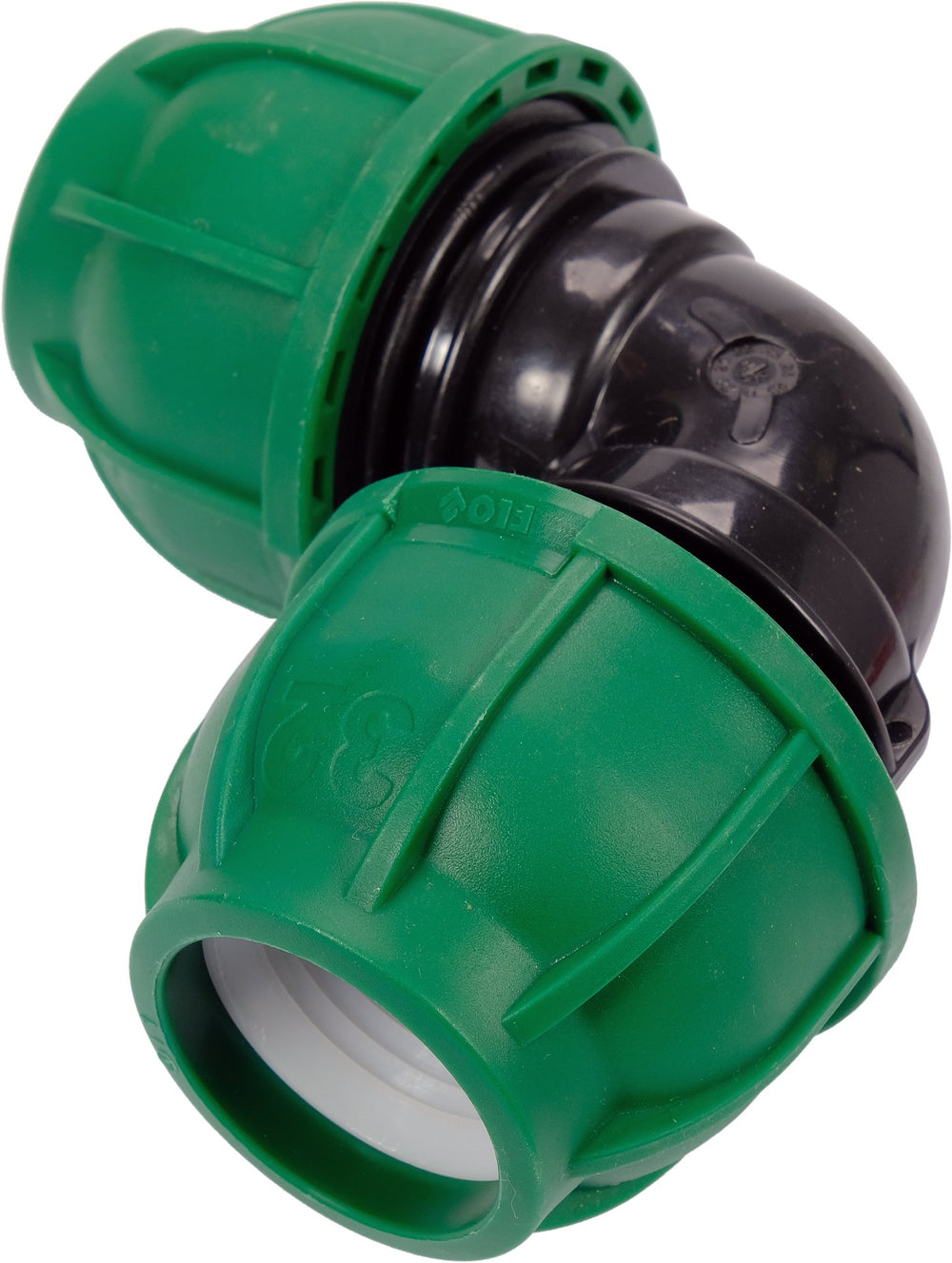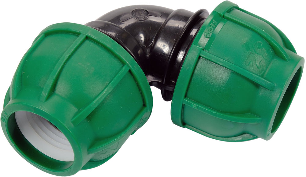 Adattatore a Gomito 90° per Tubi PE 32x32 mm – A Compressione, Polipropilene 10 BAR FLO