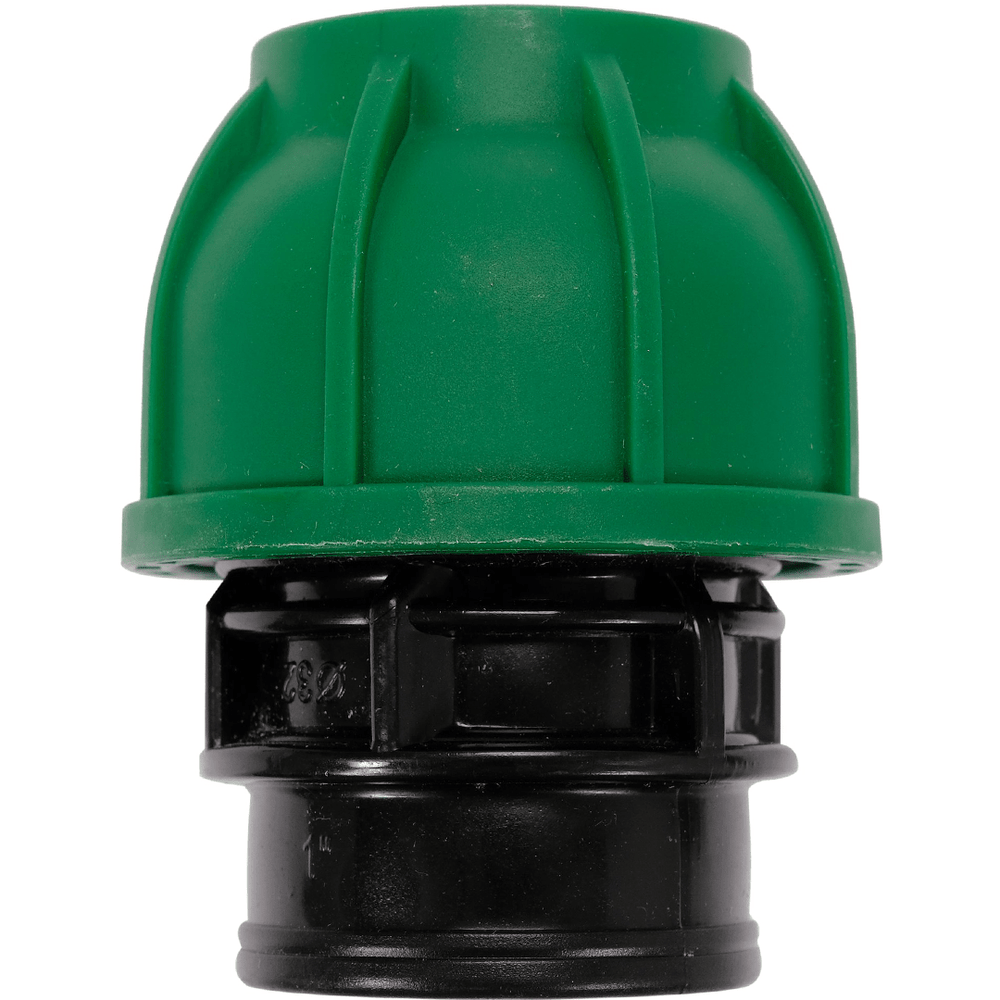Il raccordo a compressione FLO 32 mm x 1" GW è pensato per il collegamento semplice e sicuro di tubi in polietilene (PE) a componenti filettati femmina da 1 pollice. La struttura in polipropilene (PP) di alta qualità assicura una tenuta idraulica efficace, elevata resistenza meccanica e un’installazione rapida grazie al sistema a compressione.