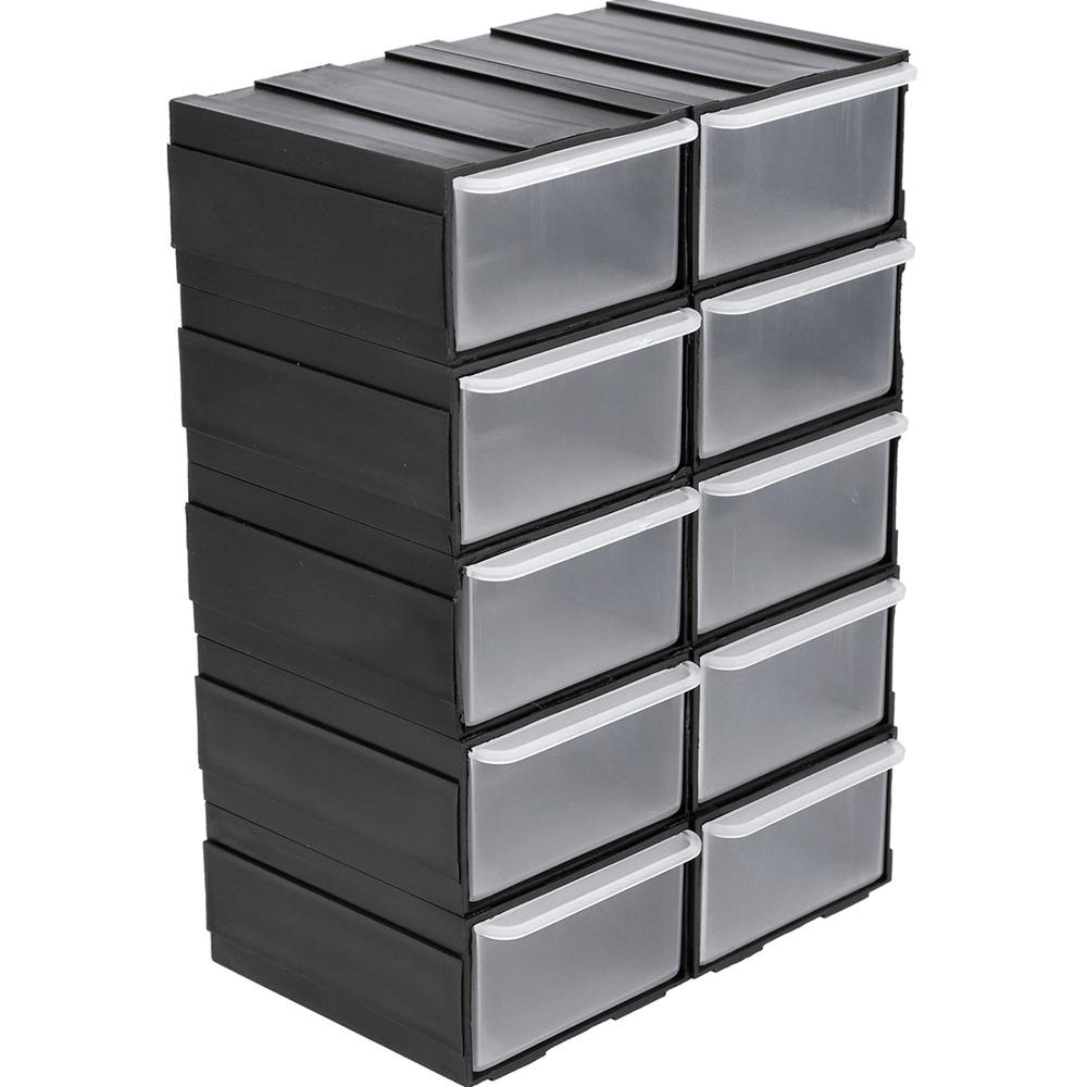 Con questo set di cassetti da officina con 10 scomparti, avrai sempre a disposizione ogni elemento di fissaggio o accessorio, in modo ordinato e facilmente accessibile.