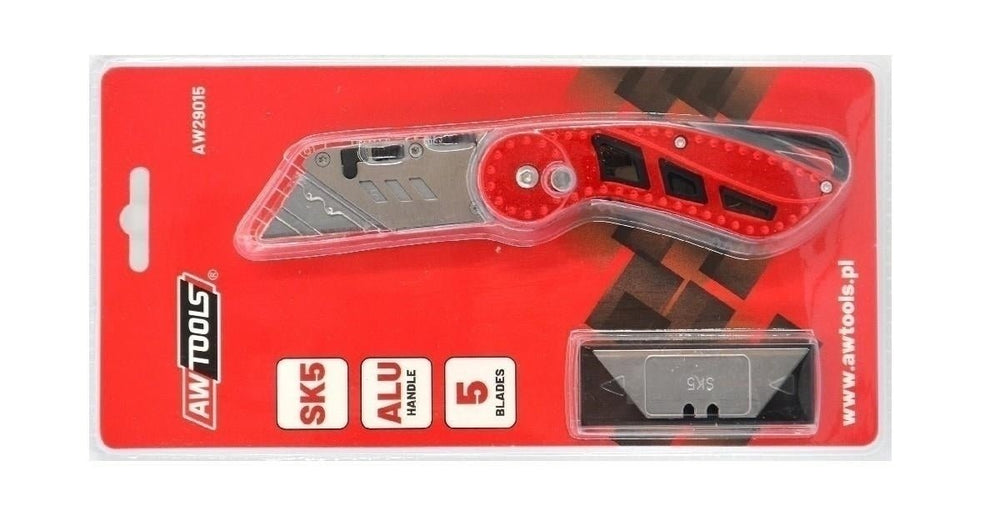 La lama trapezoidale SK5 da 18 mm è sostituibile senza bisogno di utensili, rendendo questo coltello estremamente funzionale.