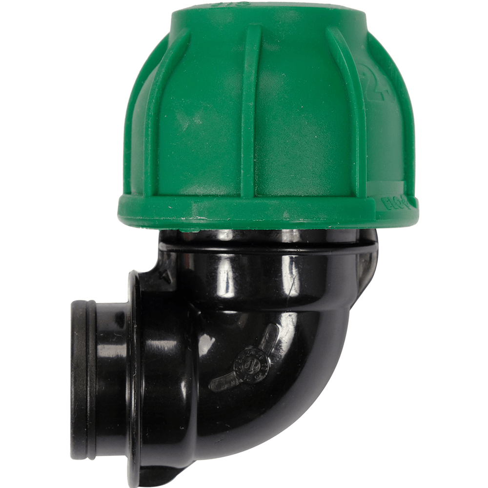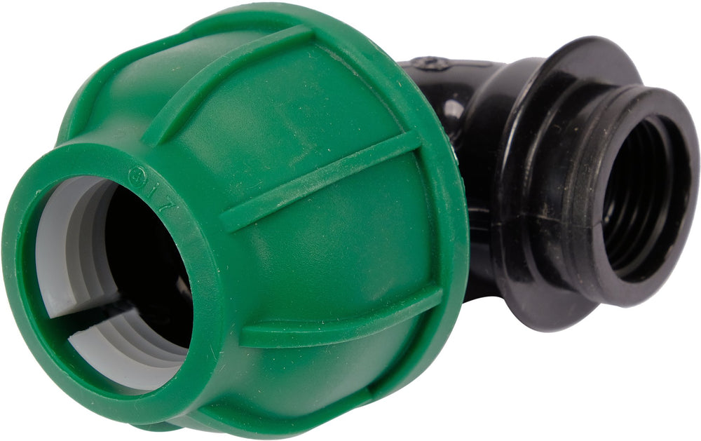 Il gomito femmina FLO 90° – 25 mm x 1/2" GW è un raccordo a compressione progettato per collegare un tubo in polietilene (PE) da 25 mm a un componente filettato femmina da 1/2”, garantendo una connessione angolare solida e a tenuta stagna.