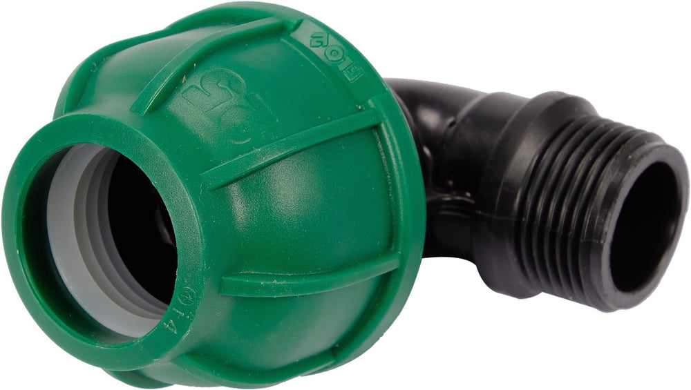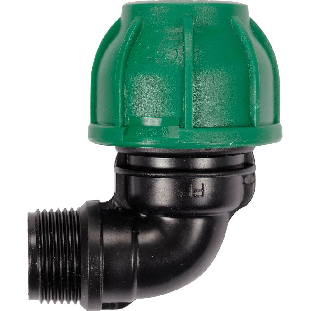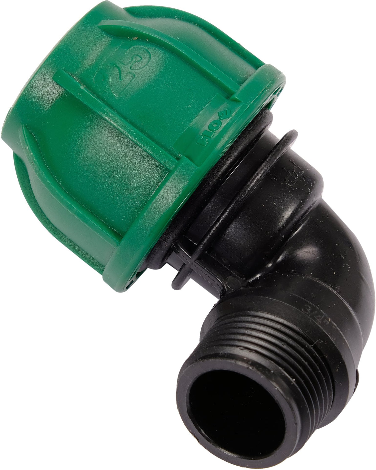 Gomito 90° per Tubi PE 25 mm x 3/4" GZ – Raccordo Maschio a Compressione, Polipropilene 10 BAR FLO