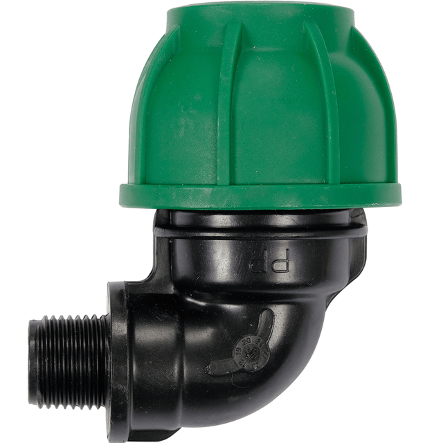 Gomito 90° per Tubi PE 32 mm x 1/2" GZ – Raccordo Maschio a Compressione, Polipropilene 10 BAR FLO