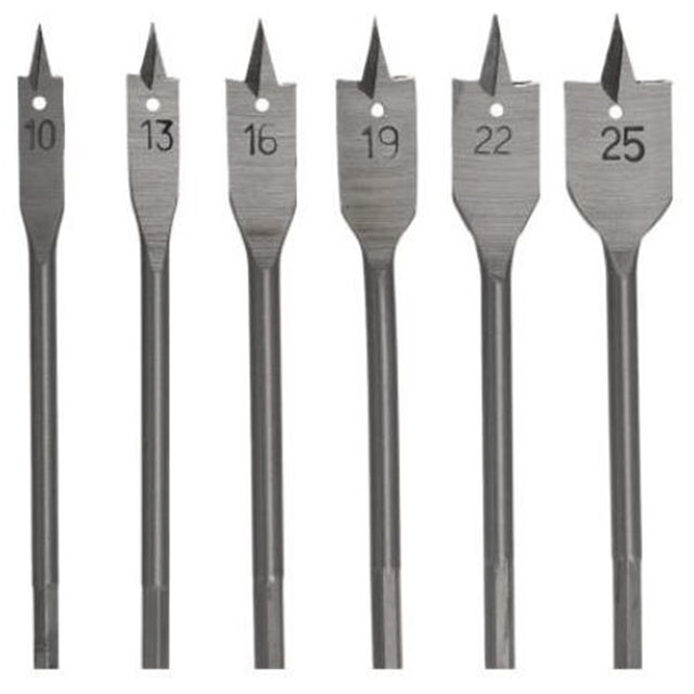 Punte da Trapano Piatte in Acciaio al Carbonio per Legno, Set da 6 Pezzi