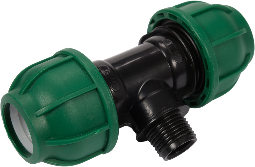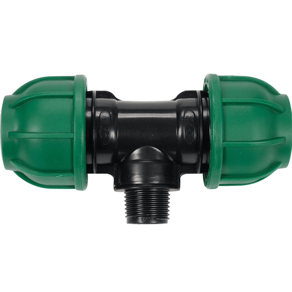 Raccordo a T per Tubi PE 25 mm x 1/2" x 25 mm – Attacco Centrale Maschio ET, Polipropilene 10 BAR FLO