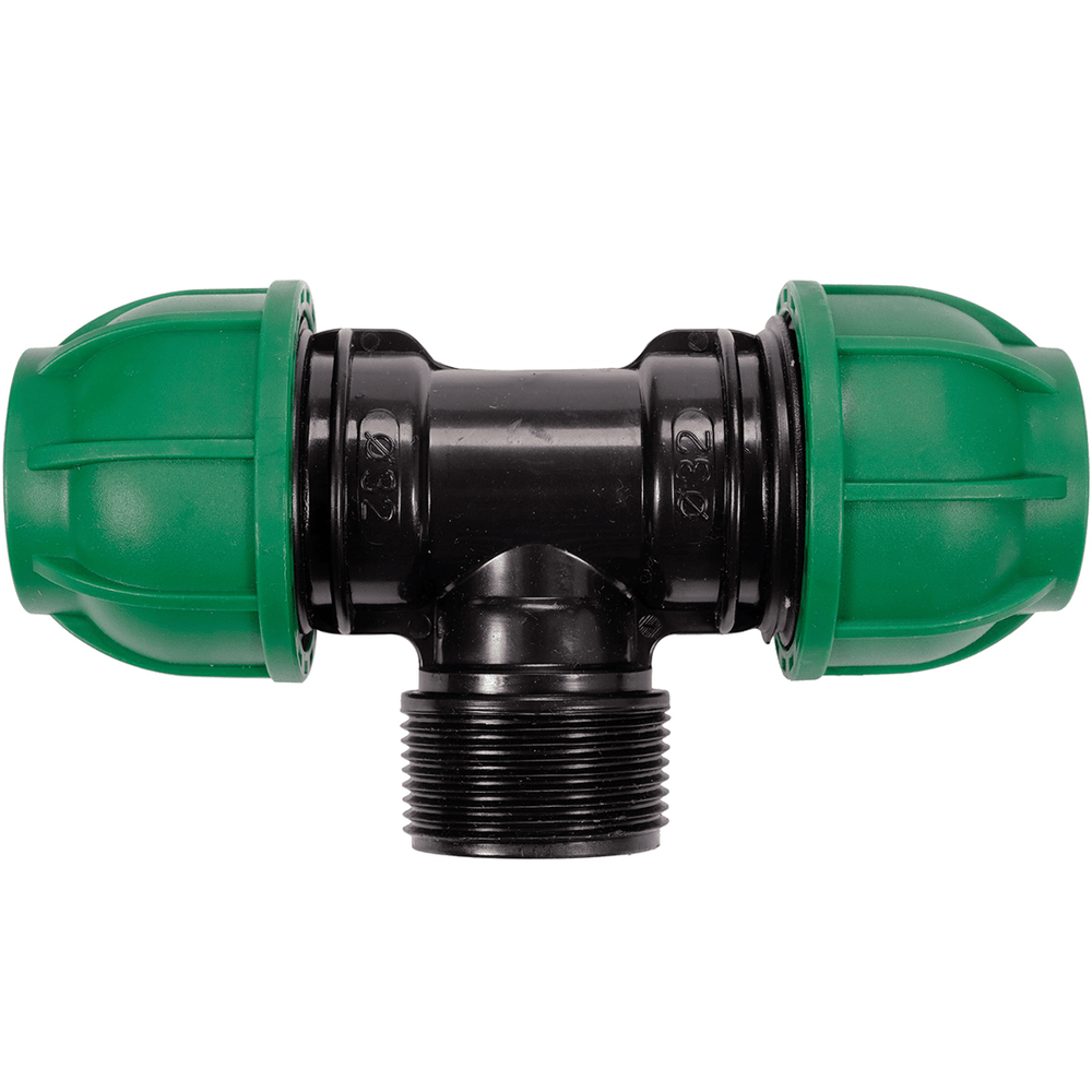 Raccordo a T per Tubi PE 32 mm x 1-1/4" x 32 mm – Filetto Maschio, Polipropilene 10 BAR FLO