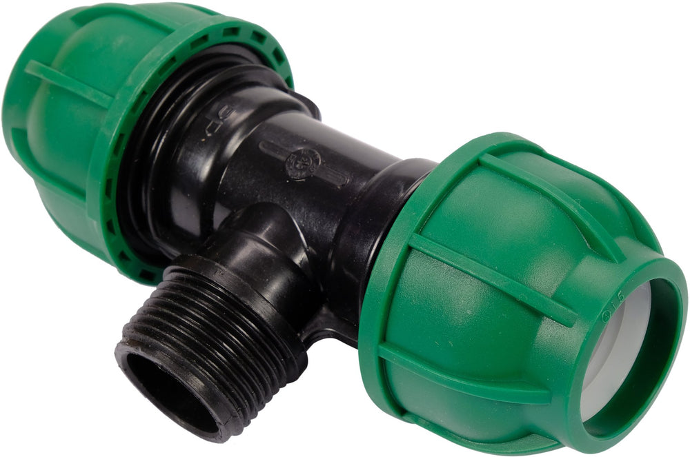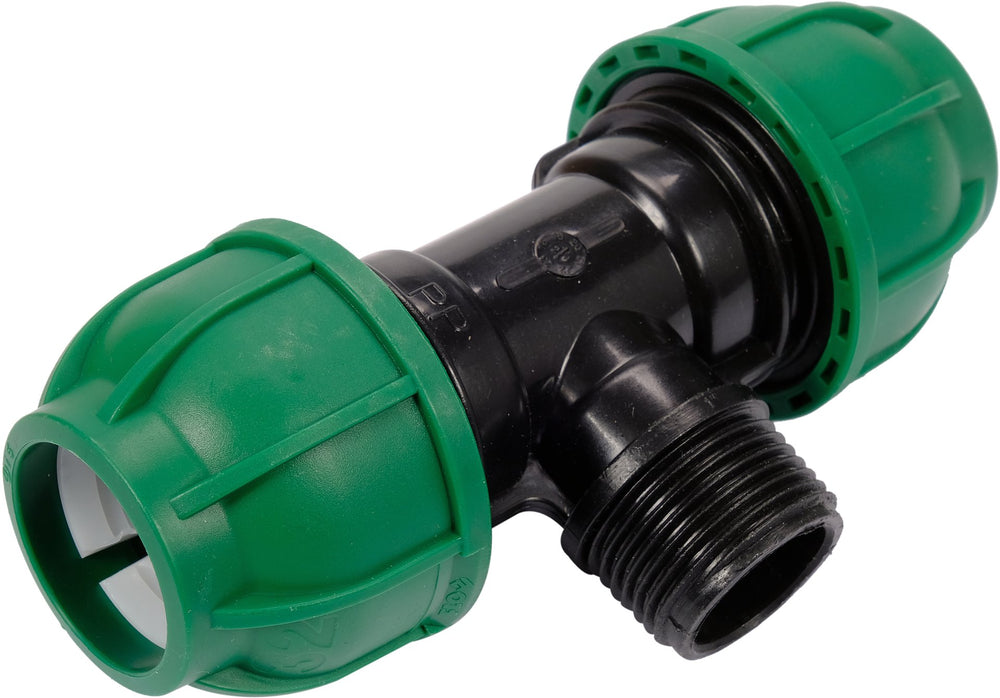 Raccordo a T per Tubi PE 32 mm x 1" x 32 mm – Attacco Centrale Maschio GZ, Polipropilene 10 BAR FLO