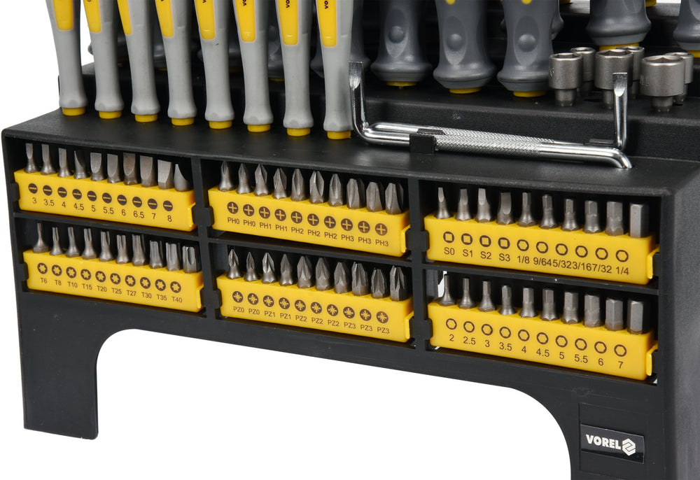 Il set di cacciaviti Vorel 60750 è realizzato con materiali di alta qualità, garantendo durata e resistenza. L'ampia varietà di dimensioni offre versatilità e consente di raggiungere anche gli spazi più difficili.