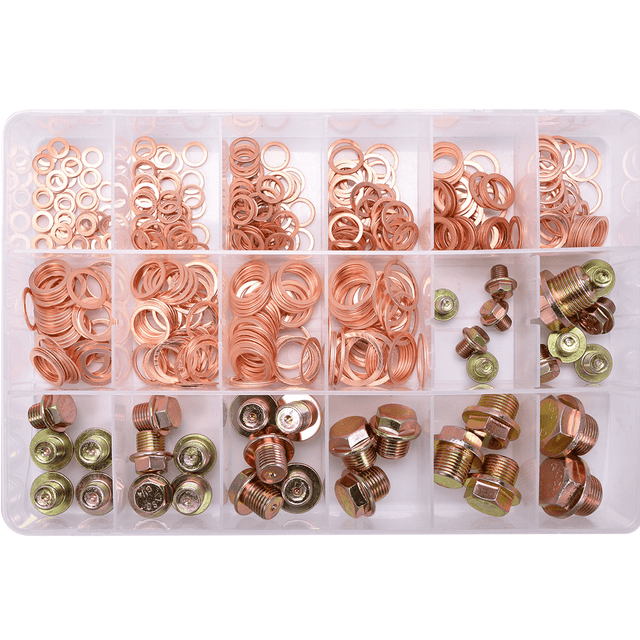 Questo kit professionale comprende un assortimento di 534 pezzi di viti e guarnizioni in rame, ideali per la manutenzione e la riparazione delle coppe dell’olio di motori di diverse dimensioni. Le guarnizioni in rame assicurano una perfetta tenuta e resistenza alle alte temperature e alla pressione, prevenendo perdite di olio durante il funzionamento del motore.