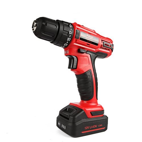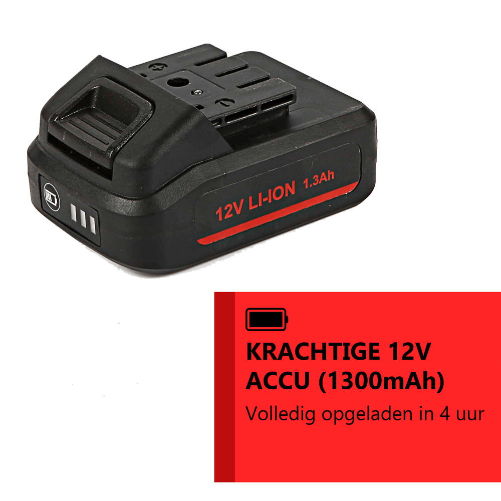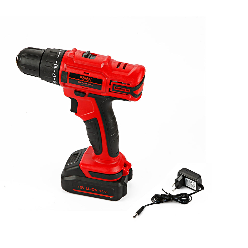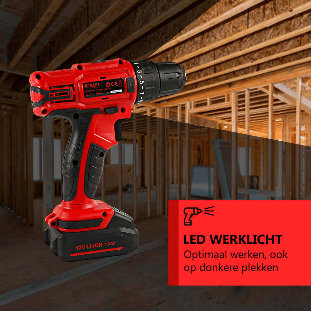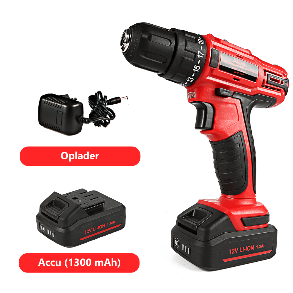 Trapano a batteria Kibani 12v - Batteria da 1300 mAh - 1400 giri/min - testa di perforazione da 10 mm - inclusa illuminazione a LED