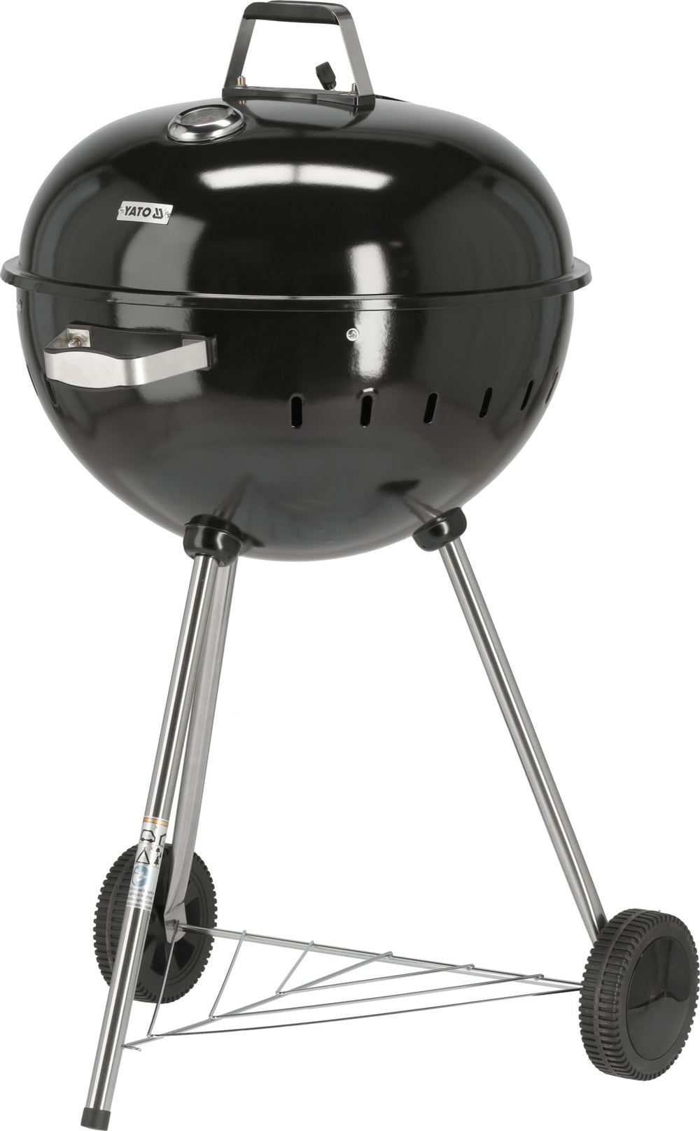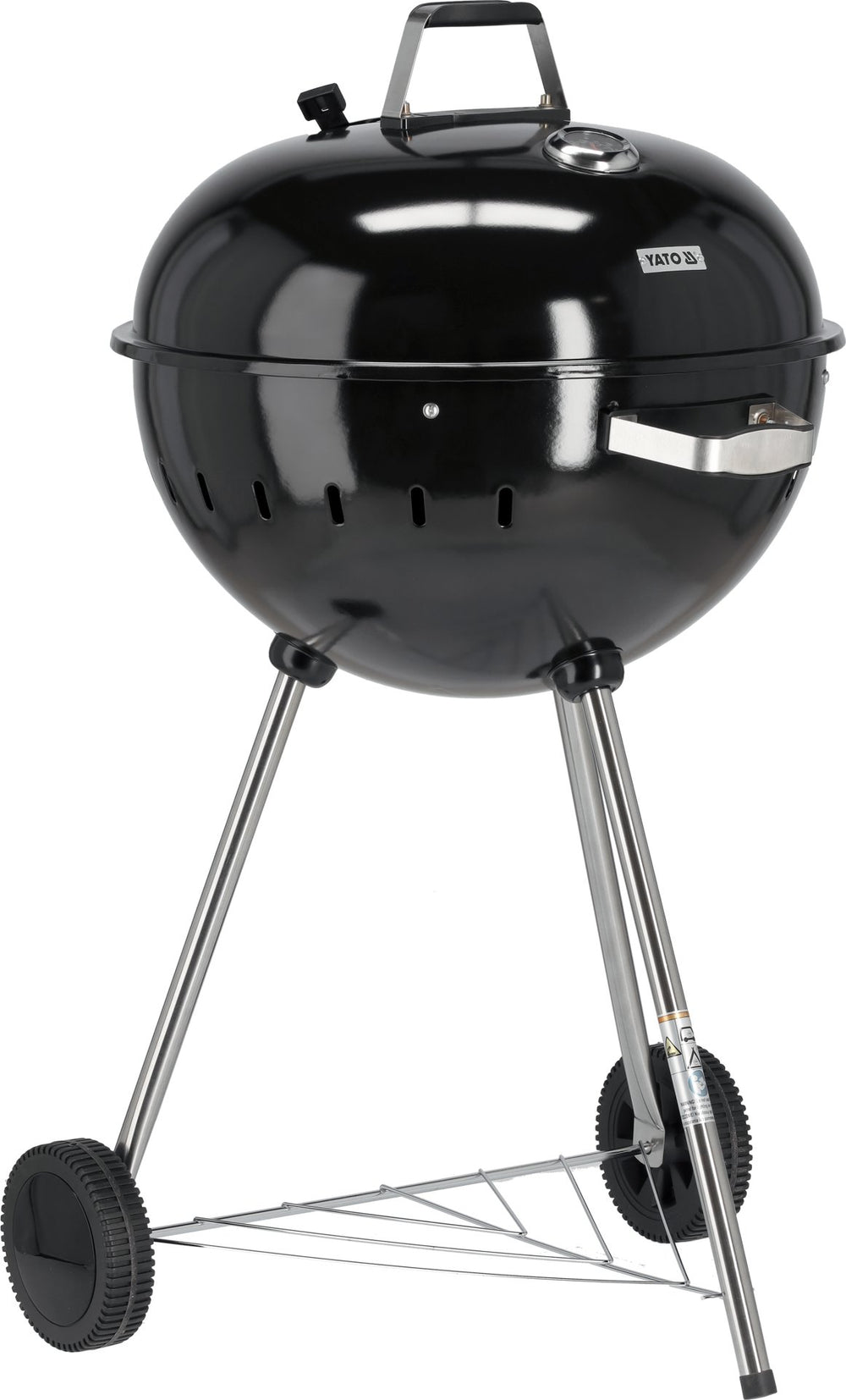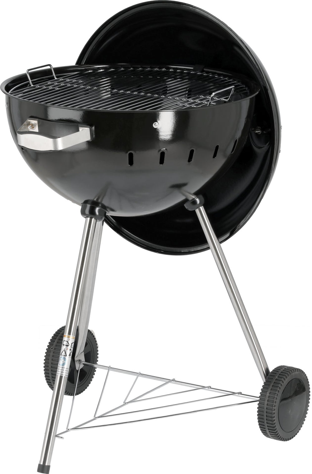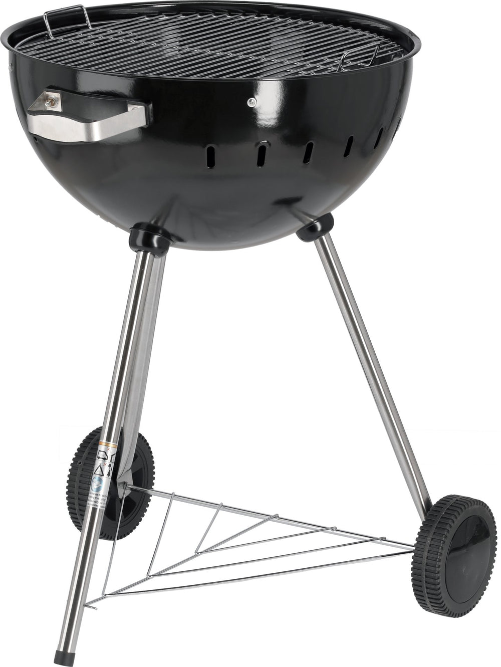 La struttura è composta da tre gambe stabili, di cui due con rotelle, per consentire un facile spostamento in terrazza o in giardino. Il ripiano inferiore offre spazio aggiuntivo per appoggiare accessori, utensili o carbone.