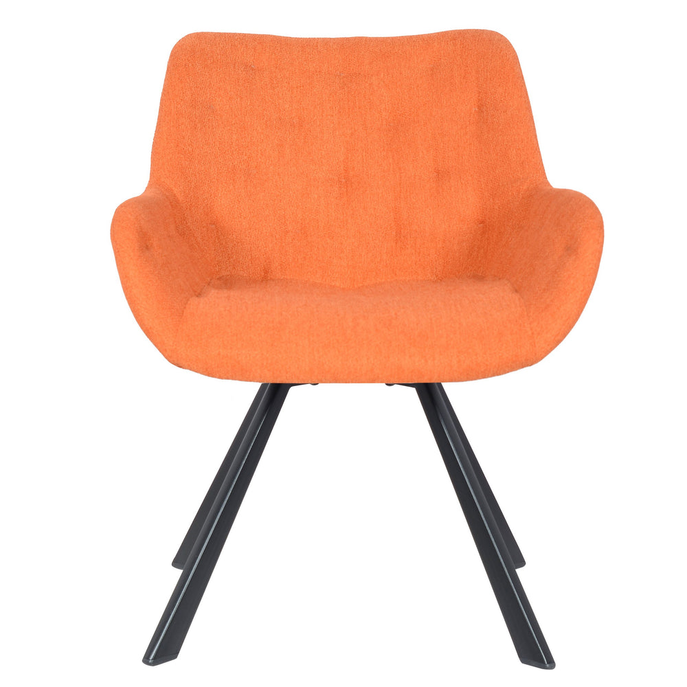 Les pieds élégants de la chaise sont en acier noir et le rembourrage est fait d'un beau tissu orange. La chaise a une hauteur d'assise confortable de 44,5 cm et une assise spacieuse de 64,5 cm x 39,5 cm. La chaise mesure 77 cm de haut et 60,5 cm de large au total.