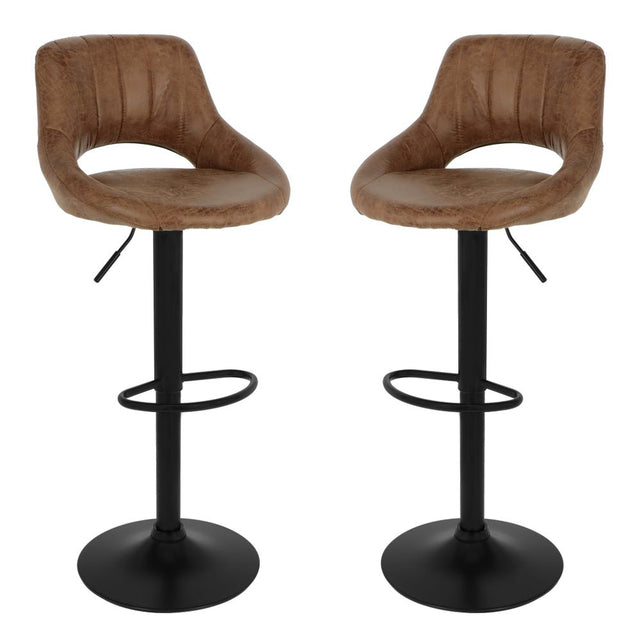 Les coutures décoratives sur le dossier et le cuir synthétique noir texturé confèrent au tabouret de bar 2019 marron clair une ambiance vintage rappelant les sièges de pilote des années 1950. Les formes rondes de l'assise et de la structure ramènent le design au 21e siècle.