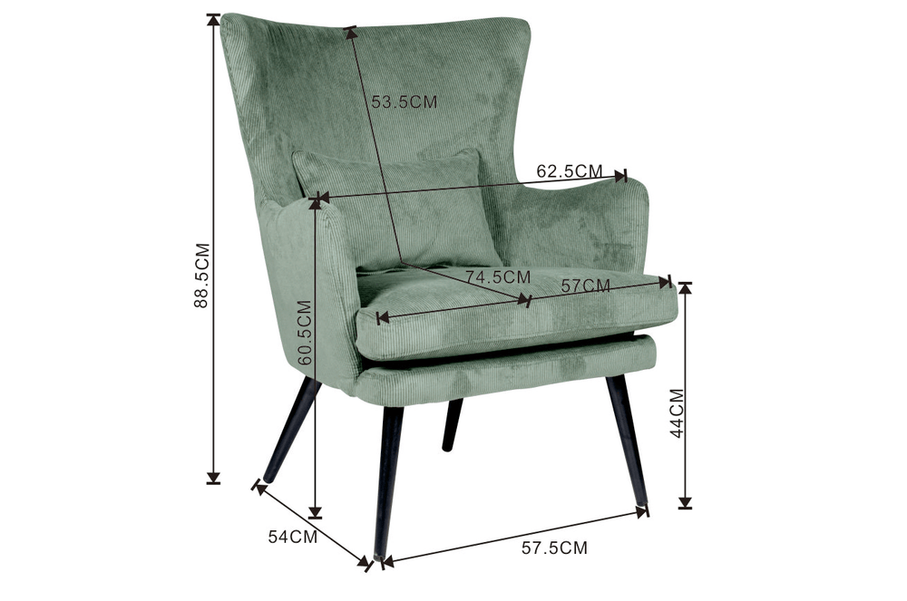 Les pieds élégants de la chaise en tissu Charlie sont en acier noir et le rembourrage est dans un beau tissu. La chaise a une hauteur d'assise confortable de 44 cm et une assise spacieuse de 74,5 cm x 57 cm. La chaise mesure 77 cm de haut au total et 60,5 cm de large. La chaise est également livrée avec un coussin de dossier supplémentaire pour plus de confort !Le coin salon peut être retiré pour que la chaise puisse toujours être rangée !