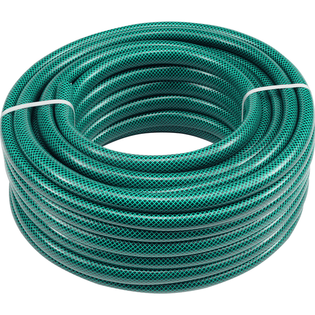 Tubo da giardino a 3 strati, realizzato in plastica flessibile con rinforzo a treccia incrociata in poliestere, progettato per un uso affidabile in ambienti domestici e semi-professionali. Resistente all’usura, alla formazione di alghe e agli agenti atmosferici.