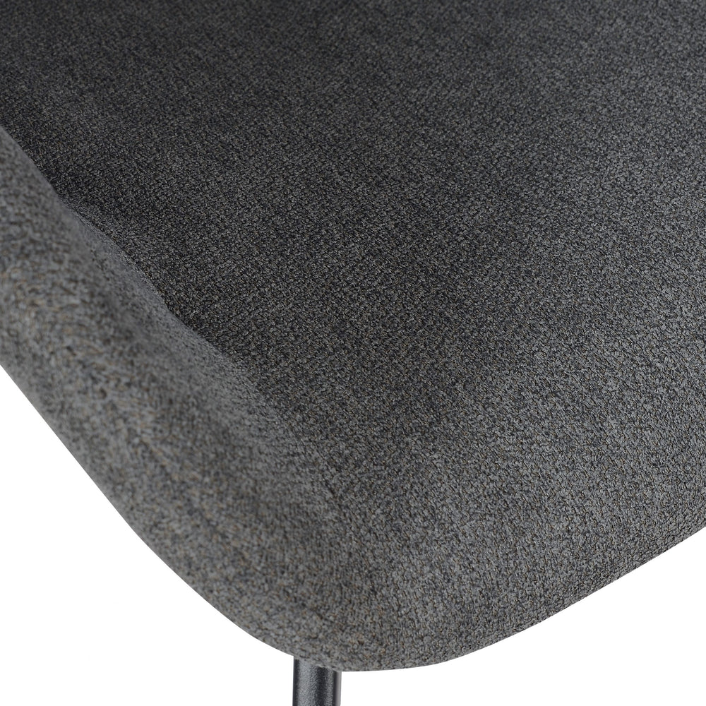 Les pieds élégants de la chaise sont en acier noir et le rembourrage est fait d'un beau tissu noir.La chaise a une hauteur d'assise confortable de 44,5 cm et une assise spacieuse de 64,5 cm x 39,5 cm. La chaise mesure 77 cm de haut et 60,5 cm de large au total.