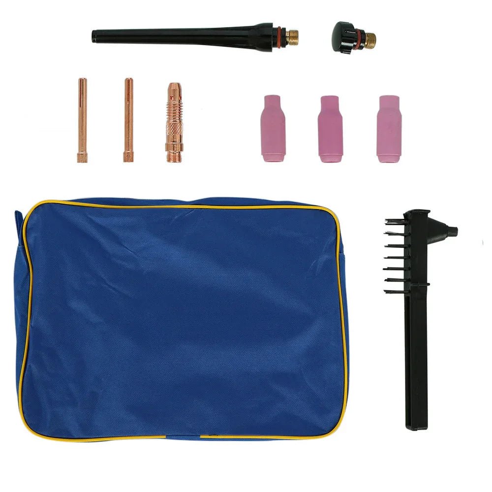 À la machine à souder, vous obtenez un ciseau à scories et une brosse, ce qui vous permet de terminer proprement votre travail de soudage MMA. De plus, la livraison standard comprend : un porte-électrode, une pince de masse, un tuyau TIG, un sac de rangement, un écran de soudage, 3 pinces, 2 capuchons de torche et 3 coupelles à gaz.
