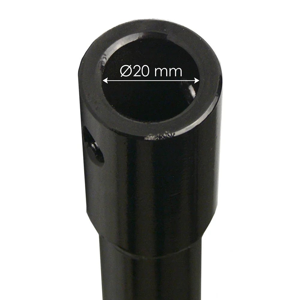 Cette tarière a une longueur de 800 mm. Vous voulez creuser plus profondément ? Ensuite, vous pouvez utiliser une ou deux extensions. L'extension mesure 500 mm de long et peut rallonger la tarière jusqu'à un mètre.