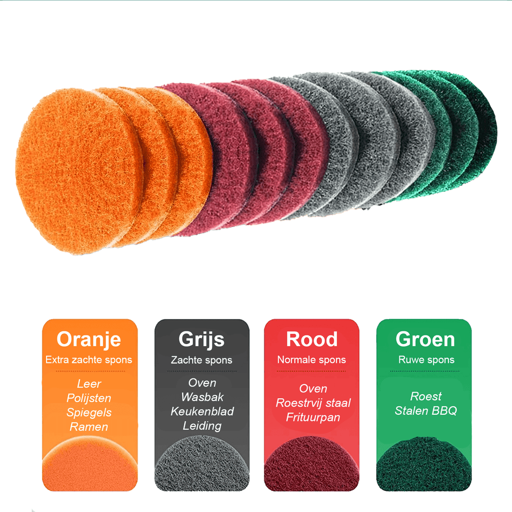 delle macchie ostinate Elimina facilmente le macchie ostinate con le setole rigide. Le spazzole in combinazione con un potente trapano assicurano di rimuovere le macchie ostinate in un batter d’occhio.
